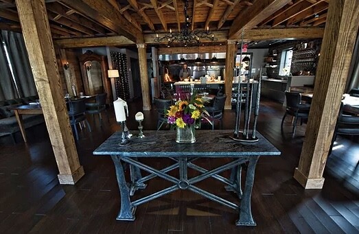 Three Blacksmiths serves a fixed weekly dinner menu of local, seasonal, handcrafted foods from Rappahannock County, Virginia and nearby. The spacious dining area with its open hearth and kitchen, comfortable seating, candlelight and lavish wood finishes makes for a relaxed, intimate dining experience. With just 20 seats and one seating time, the table is yours for the evening.